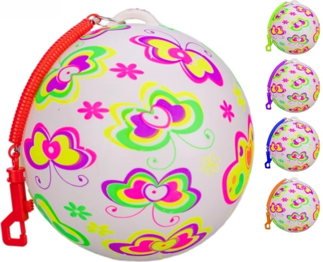Skakajuća lopta s raznobojnim motivom leptira idealna je igračka za aktivnu djecu. Priložena opruga omogućuje lako odbijanje i kontrolu kretanja lopte, tako da djeca vježbaju reflekse, ravnotežu i koordinaciju oko–ruka. Zahvaljujući kompaktnoj veličini, izvrsna je za igre u vrtu, na igralištu i u dječjoj sobi.