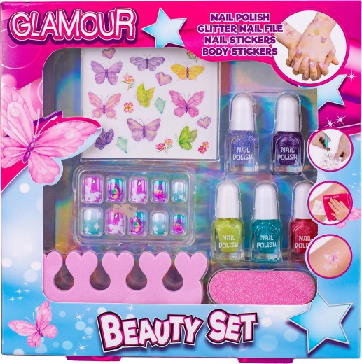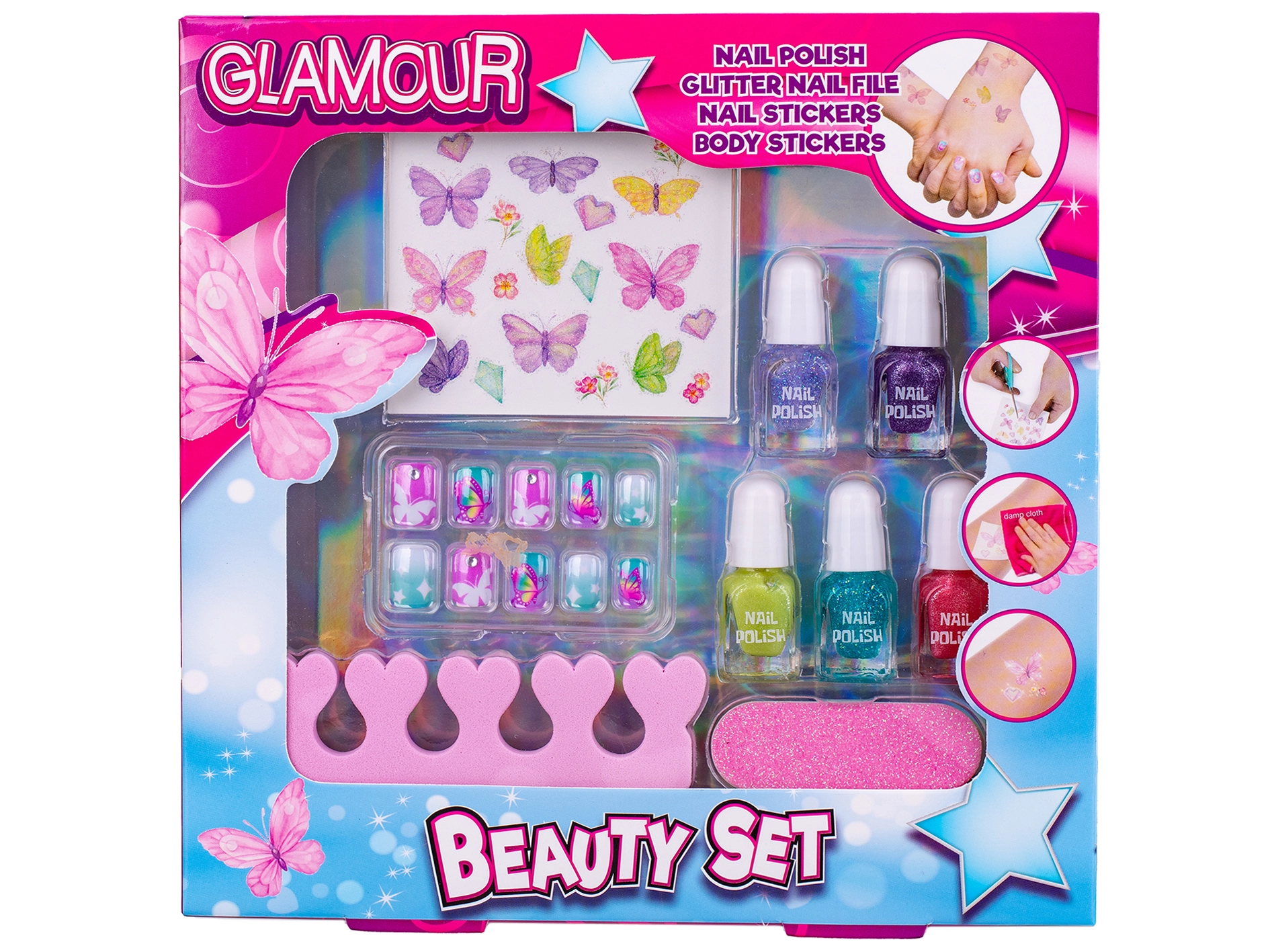 Ovaj glamur set ljepote idealan je izbor za prve eksperimente s manikurom. Djeca mogu sigurno isprobavati razne boje, uzorke i kombinacije te stvarati originalne lookove prema vlastitoj mašti. Zahvaljujući kompaktnom pakiranju, set se lako prenosi i sjajan je za kuću i putovanja.