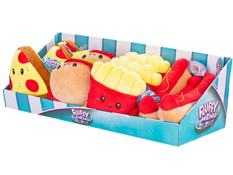 Kolekcija Fluffy Menu donosi omiljene fast food poslastice u nježnom plišanom izdanju. Djeca će zavoljeti realistične oblike i boje koje potiču maštu, osjetilno iskustvo i prve role-play aktivnosti. Zahvaljujući sigurnoj izradi, igračke su prikladne i za najmlađe bebe.
