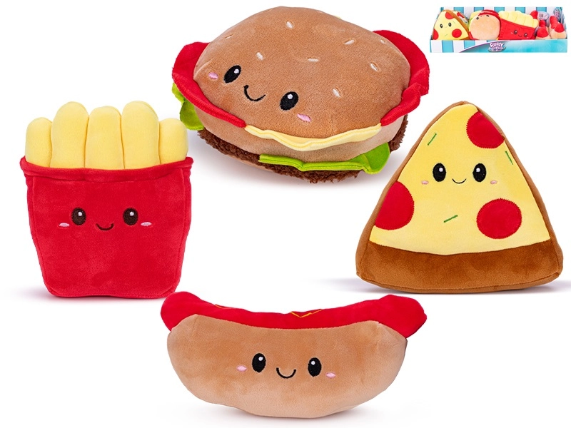 Svaki komad izrađen je od kvalitetnog, na dodir ugodnog pliša i osmišljen da izdrži svakodnevnu igru. Raznolik odabir – hamburger, pizza, pomfrit i hot dog – omogućuje djeci stvaranje vlastitog menija i proširivanje svoje kolekcije.