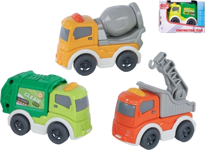 Igračka je dostupna u tri popularne varijante: miješalica, dizalica i komunalno (smetlarsko) vozilo. Zahvaljujući kompaktnim dimenzijama, vozila stanu u džep ili ruksak te su idealna za putovanja i dječju sobu. Isporučuje se u kutijici – odlična ideja za poklon malim ljubiteljima građevinskih strojeva.