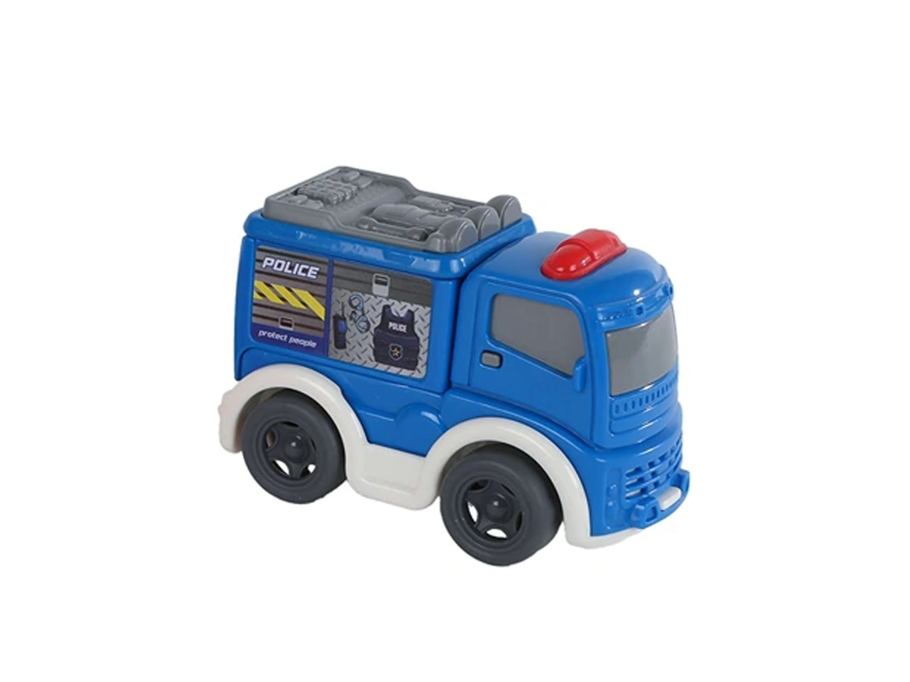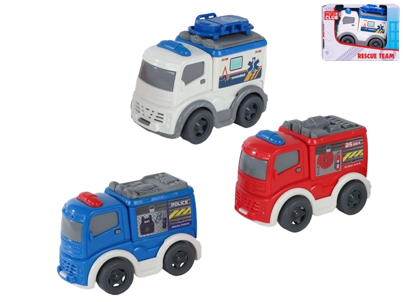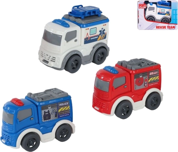 Dostupne su tri omiljene vrste – policijski auto, vatrogasno vozilo i hitna pomoć – koje nadahnjuju uzbudljivu igru spašavanja i razvijaju maštu. Svako vozilo je pojedinačno pakirano u kutijici, pa je izvrsno kao mali poklon.