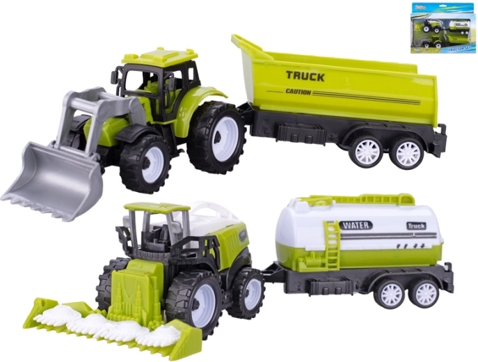 Ovaj atraktivan set kombinira detaljno izrađen traktor i kombajn, svaki sa svojom prikolicom. Zahvaljujući slobodnom hodu vozila se lako kontroliraju i nude gladak pokret po svakoj podlozi. Djeca mogu stvarati vlastite farmerske priče, prevoziti teret i otkrivati svijet poljoprivrednih strojeva.