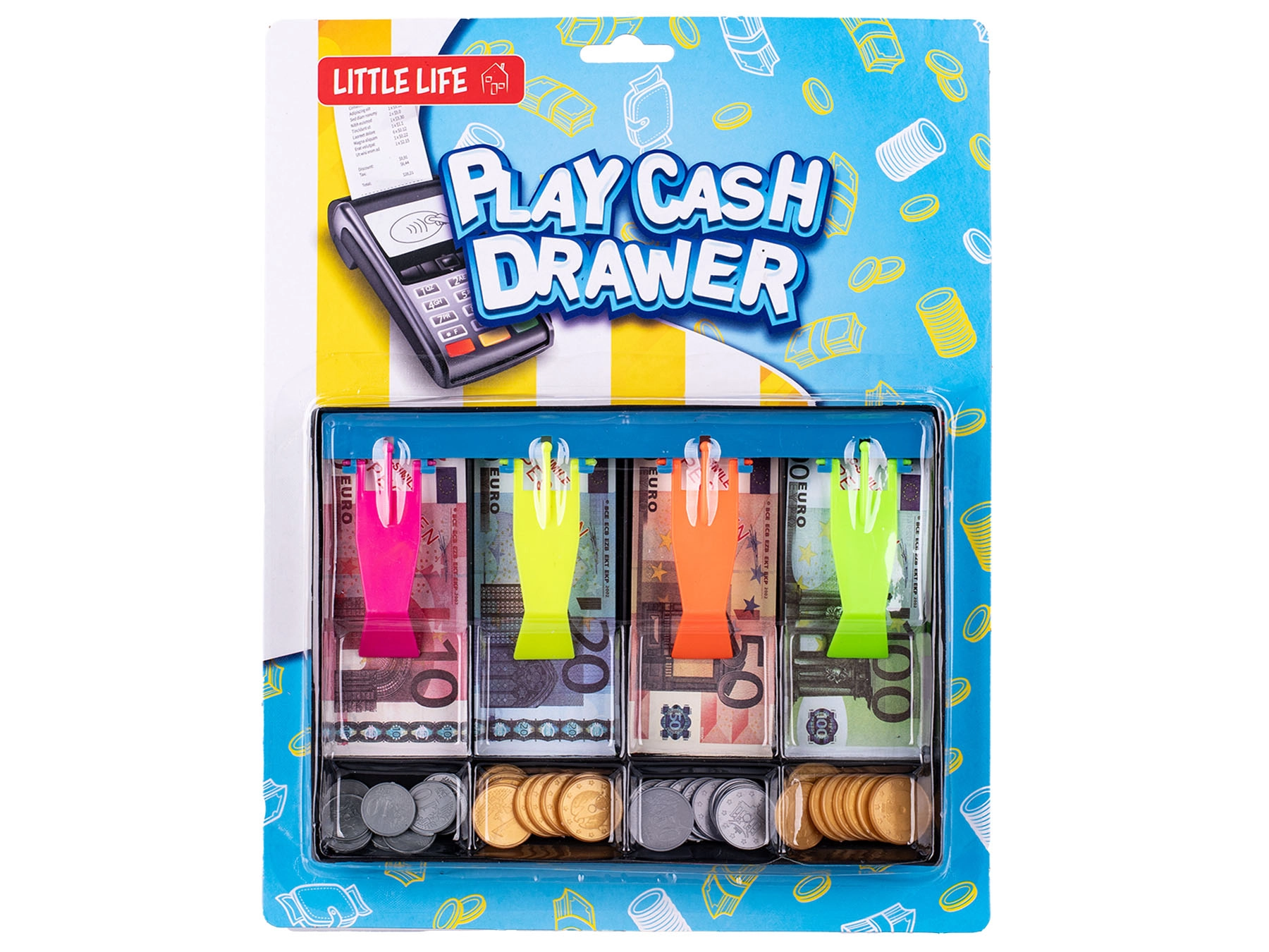 Zabavna dječja blagajna dimenzija 20 × 14,5 cm idealna je za igru trgovine. U kompletu su plastične novčanice i kovanice za vježbanje brojanja novca i razvoj financijske pismenosti. Kompaktna veličina olakšava smještaj u dječjoj sobi, a kvalitetni materijali osiguravaju sigurnu i dugotrajnu upotrebu. Prikladno za djecu od 3 godine naviše.