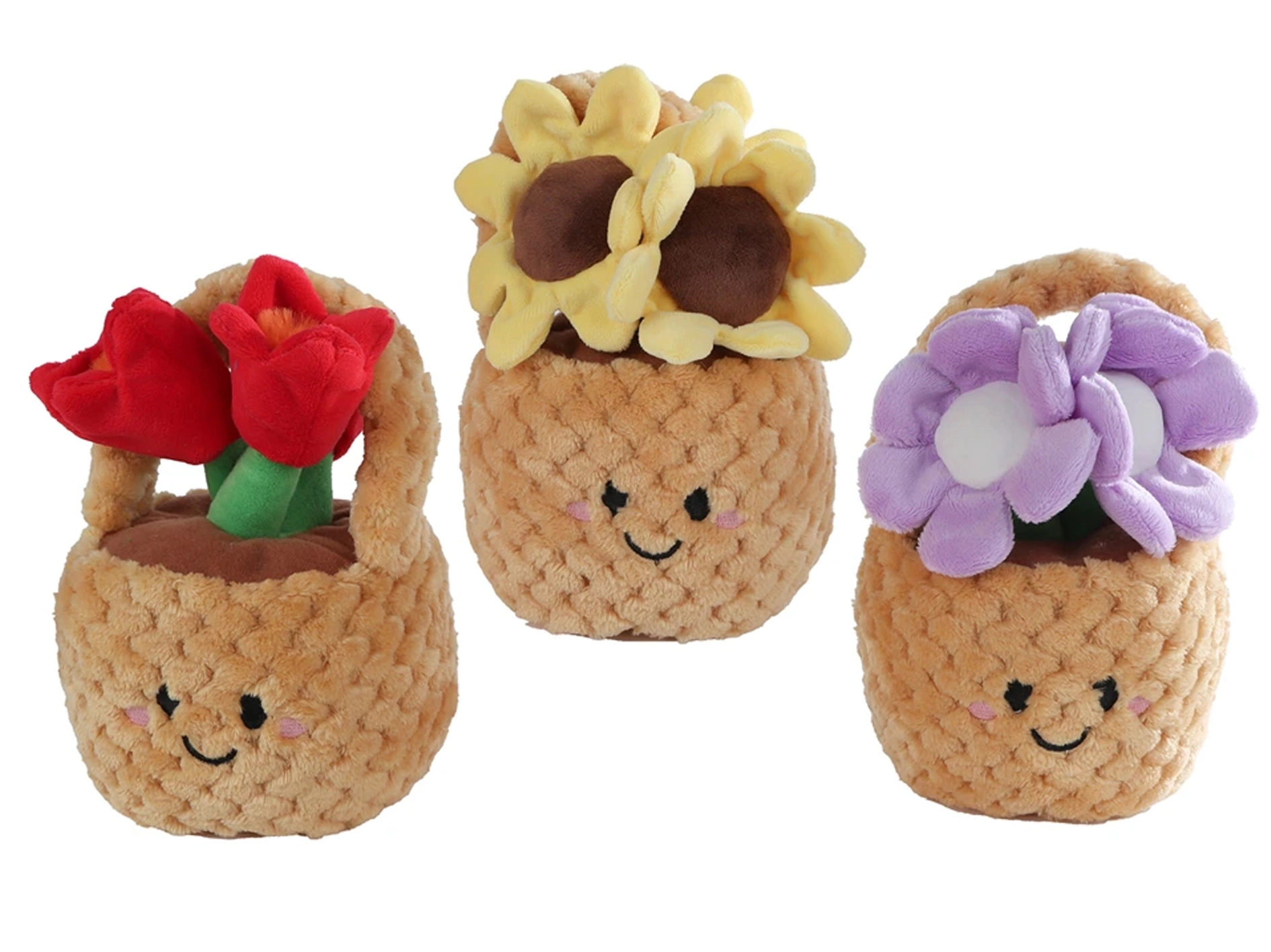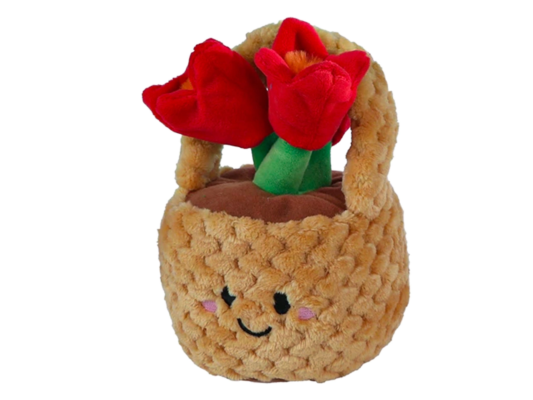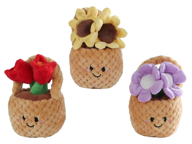 Preslatka plišana košarica s nasmijanim licem i cvijećem uljepšat će dječju sobu i razveseliti već od rođenja. Mekani hipoalergeni pliš, sigurna izrada bez oštrih dijelova i idealna veličina za dječju ručicu (18 cm) potiču finu motoriku i taktilnu percepciju. Dostupno u tri boje cvjetova – ljubičastoj, žutoj i crvenoj.