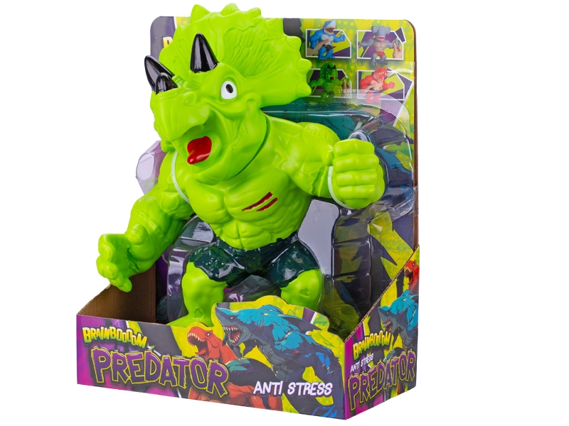 Otkrijte zabavnu antistresnu igračku – rastezljivi triceratops Brainboooom s realističnim izgledom. Ima čvrstu plastičnu glavu i mekano, rastezljivo tijelo koje možete stiskati, rastezati i gnječiti za ublažavanje stresa. Idealno za djecu od 3 godine i odrasle, pakirano u poklon-kutiji.