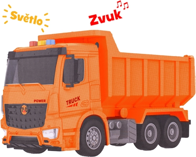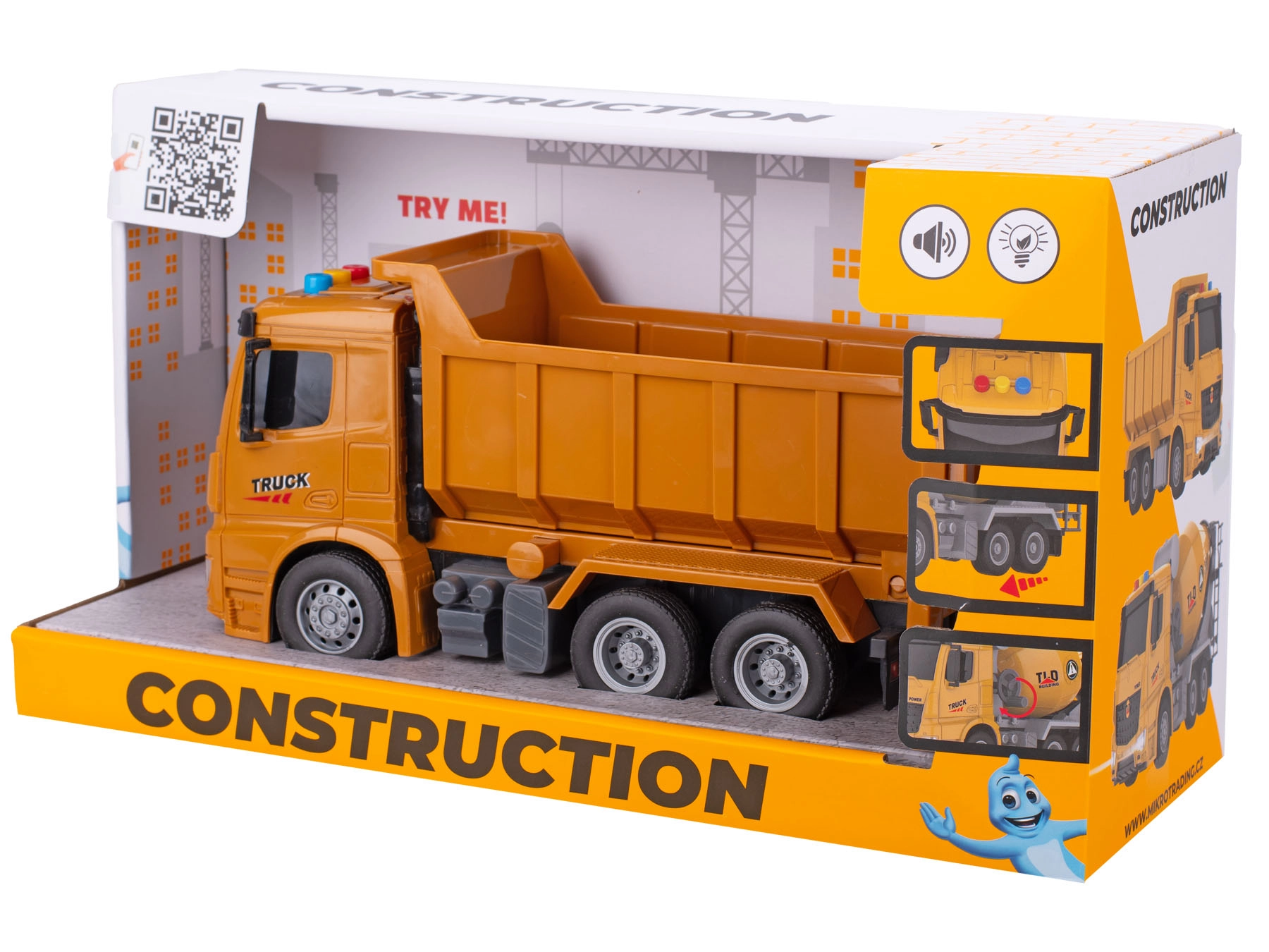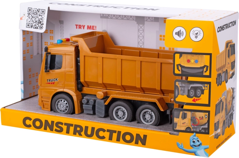 Za još veću autentičnost tu su svjetlosni i zvučni efekti koji se aktiviraju pritiskom na gumb. Kiperska karoserija omogućuje utovar i istovar “materijala” kao kod pravog kamiona. Izdržljiv plastični materijal prikladan je za igru u kući i na otvorenom, a igračka je sigurna za djecu od 3 godine.