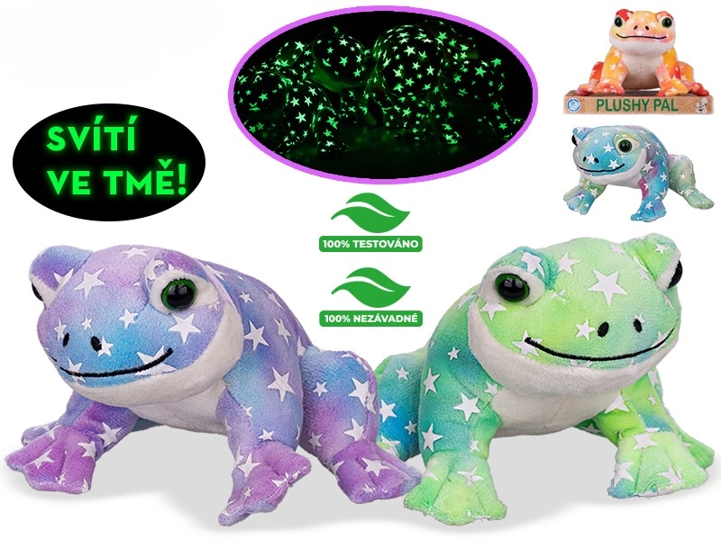 Preslatka plišana žabica veličine 12 cm koja svijetli u mraku i pomaže djeci osjećati se sigurno noću. Izrađena od mekanog, kvalitetnog pliša, pogodna već od rođenja. Dostupna u 4 živopisne boje – zelenoj, narančastoj, ljubičastoj i plavoj.