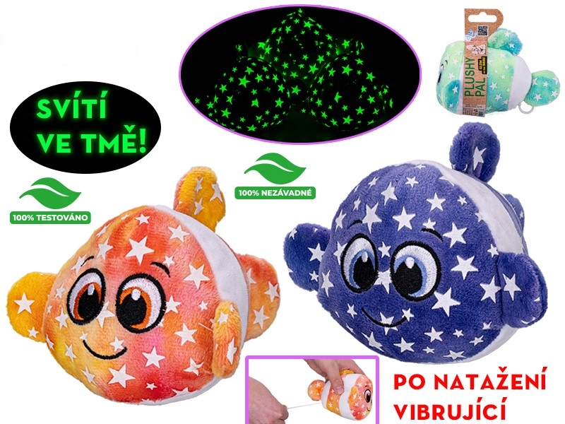 Plišana ribica s vibracijom i svjetljenjem u mraku osmišljena je za svakodnevno umirivanje i razigrano otkrivanje. Nakon jednostavnog povlačenja ribica vibrira, čime nježno stimulira dodir i pomaže razvijati koordinaciju. Svjetleći (fosforescentni) detalji na tjelu pružaju osjećaj sigurnosti pri uspavljivanju i daju večernjem ritualu čarobnu atmosferu.