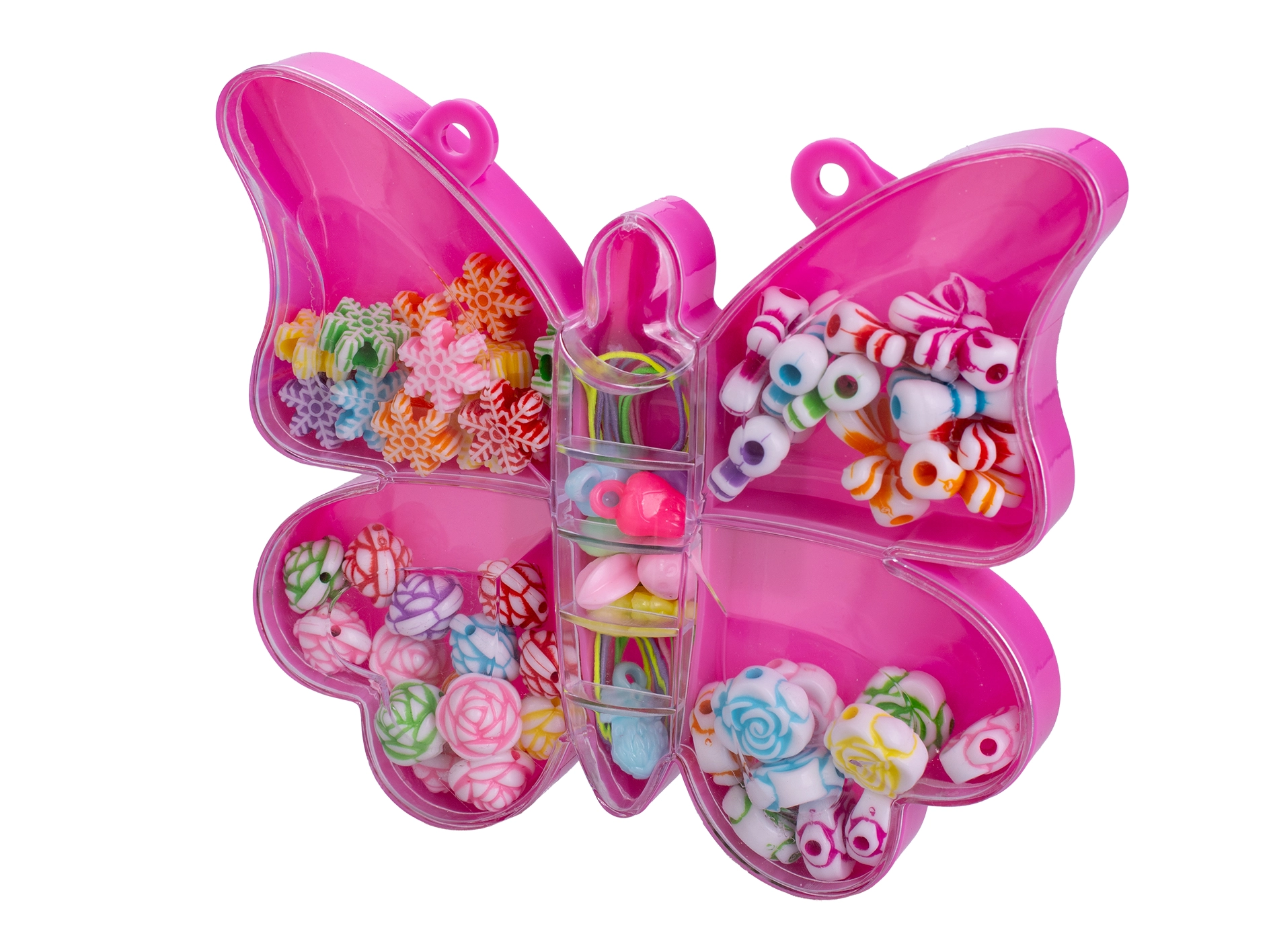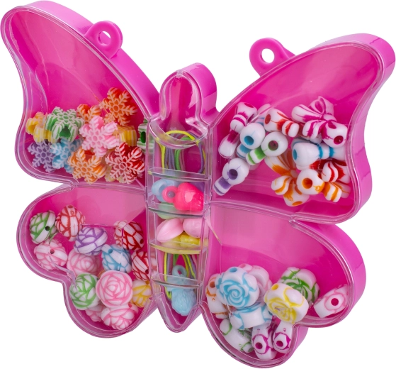 Otkrijte zabavni set perlica za nizanje uz koji će djeca od 3 godine stvarati vlastiti nakit i dekoracije. Set nudi 20 šarenih perlica u oblicima leptira i školjki, smještenih u praktičnoj kutiji za lako prenošenje. Stvaranje potiče finu motoriku, strpljenje i kreativnost.