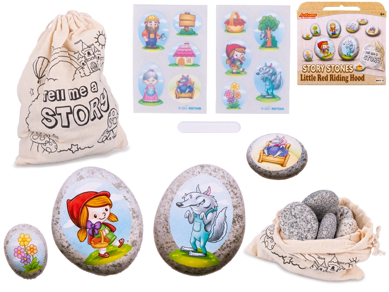 Otkrijte čaroliju klasične bajke s kreativnim setom kamenčića koji djeci omogućuje stvaranje vlastitih miniscena iz priče o Crvenkapici. Set sadrži 10 prirodnih kamenčića i set naljepnica s likovima i elementima iz bajke. Potiče finu motoriku, jezične vještine i kreativnost te je idealan za stvaranje kod kuće i na putu zahvaljujući praktičnoj kutijici.