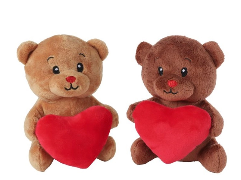 Medvjedić je dizajniran u sjedećem položaju i drži crveno srce, što naglašava njegov presladak izgled. Dostupan je u dvije varijante boja – smeđoj i tamno smeđoj – te je prikladan kao univerzalan poklon za djevojčice i dječake. Ispunjava zahtjeve za igračke za najmlađe, pa se na njega možete osloniti svaki dan.