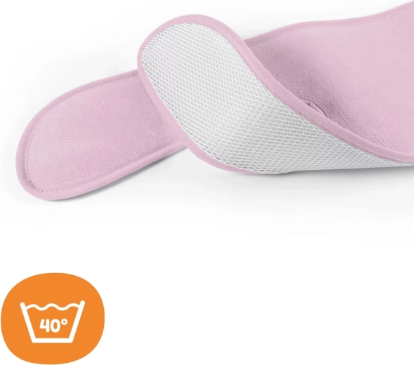 Vanjski sloj od organskog pamuka mekan je, blag prema dječjoj koži i bez pesticida. Promišljeno oblikovanje s otvorom za središnju kopču i bočnim vođenjem ramenskih pojaseva osigurava da se podloga ne pomiče i ne narušava pravilno vezanje. Jednostavno održavanje – pranje na 40 °C. Odgovara većini autosjedalica kategorije 15–36 kg i zahvaljujući novom obliku i modelima koji rastu s djetetom (otprilike 0–12 godina).