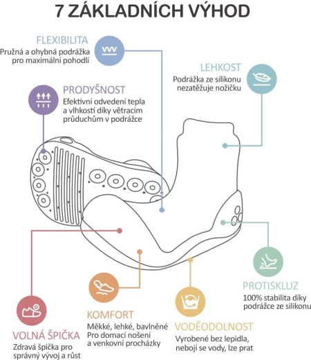 Mekan, nekližući potplat i gornji dio poput čarape od pamuka osiguravaju sigurniji oslonac i cjelodnevnu udobnost u domu i vani.