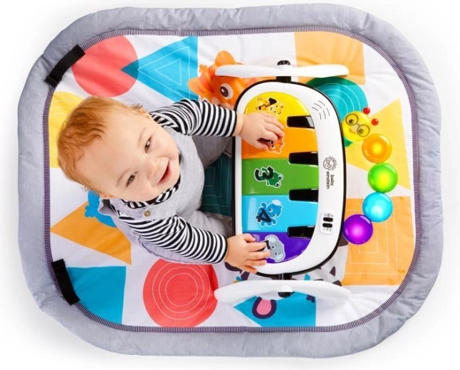 Uživajte u razigranim trenucima s igraćom podlogom 4-u-1 Kickin' Tunes marke BABY EINSTEIN, koja raste s vašom bebom. Interaktivni Magic Touch klavir reagira na dodir prsta i udarac bez tipki, nudi više od 70 melodija i zvukova te zajedno sa 7 odvojivih igračaka potiče senzorni razvoj, finu i grubu motoriku te zabavu pri ležanju na leđima, vremenu na trbuščiću, sjedenju i igri izvan podloge.
