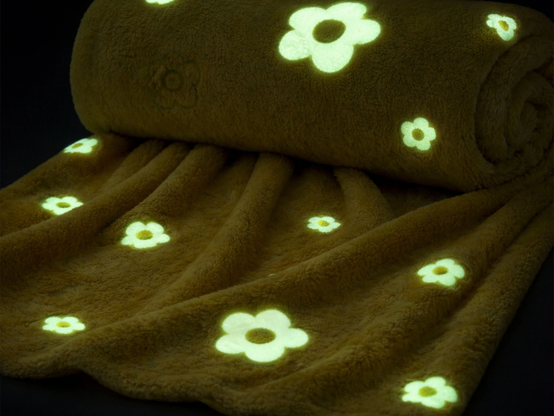 Uživajte u najmekšoj udobnosti sa svjetlećom plišanom dekom dimenzija 100 × 150 cm. Žuta podloga s slatkim cvjetnim motivom uljepšat će svaku prostoriju, a zahvaljujući luminiscentnoj tehnologiji nakon izlaganja svjetlu nježno svijetli u mraku. Odlična za djecu i odrasle, idealna za čitanje, filmske večeri i opuštanje.