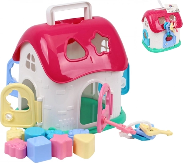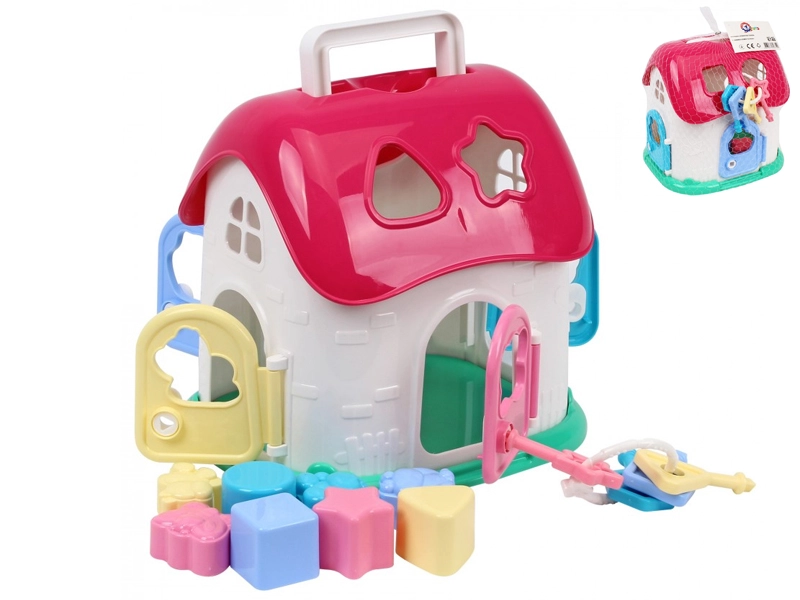 Igračka je izrađena od kvalitetne, sigurne i izdržljive plastike koja podnosi svakodnevnu upotrebu. Zahvaljujući kompaktnim dimenzijama lagana je i lako prenosiva – izvrsna i za putovanja. Pakiranje uključuje kućicu, svežanj ključeva i 8 oblika za umetanje u privlačnim bojama koje zadržavaju djetetovu pažnju.
