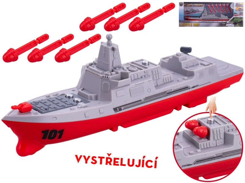 Realistična igračka ratnog broda dužine 24 cm donosi djeci akcijsku zabavu bez baterija. Zahvaljujući inercijskom pogonu brod se glatko pokreće naprijed i ispaljuje projektile za još veće uzbuđenje. Autentično sivo izvedenje s crvenim detaljima oduševit će male ljubitelje tehnike, dok jednostavno upravljanje potiče razvoj motorike i koordinacije. Pogodno za djecu od 3 godine.