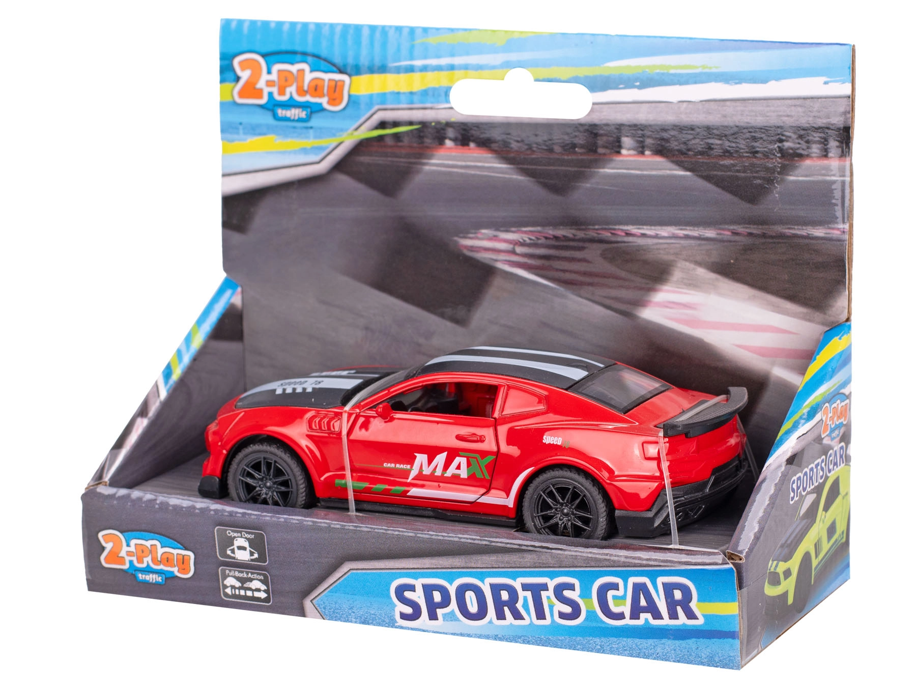 Stilski sportski auto 2-Play Traffic duljine 11,5 cm oduševljava realističnim dizajnom, kvalitetnom izradom od metala i plastike te povratnim mehanizmom koji nakon navijanja osigurava brz start naprijed. Idealan je za male vozače, donosi zabavu i razvija finu motoriku.