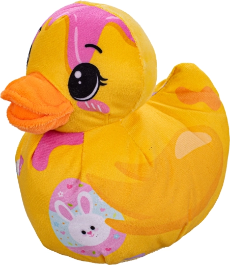 Ova uskrsna pačića razveselit će djecu i roditelje svojim prijateljskim izgledom i kvalitetnom izradom. Dostupna je u tri razigrane varijante koje unose u dječji svijet blagdansku atmosferu Uskrsa – s košaricom punom jaja, kao uskrsni zeko ili s teglicom s jajima. Kompaktna veličina od 19 cm čini je idealnim pratiteljem za uspavljivanje i izlete.