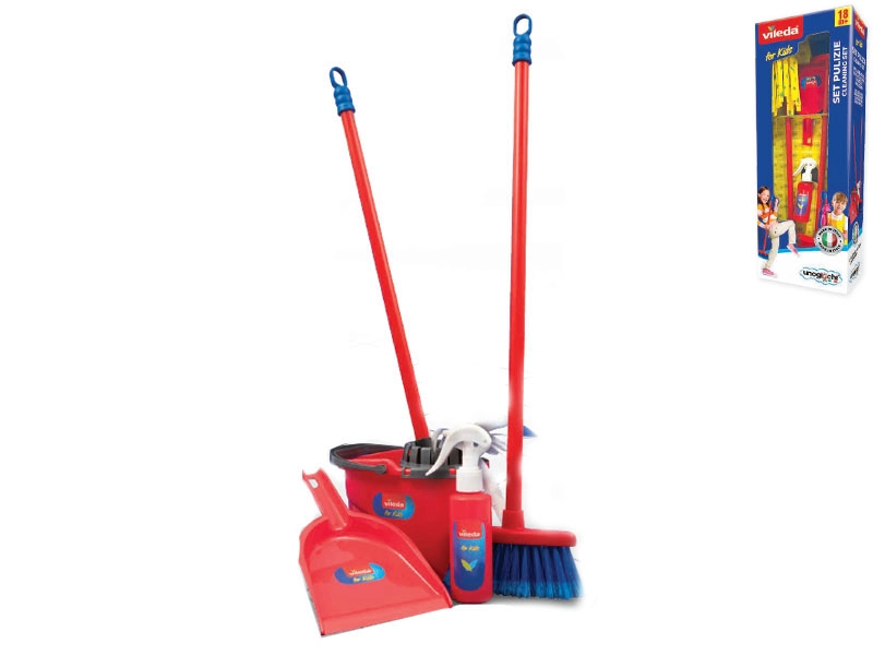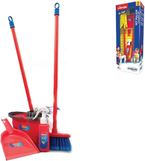 Zabavan i realističan komplet za čišćenje za djecu od 18 mjeseci inspiriran opremom Vileda. Sadrži 5 osnovnih alata – kantu s cjedilom, mop, metlu, lopaticu i mlatilicu za tepihe. Lagana i izdržljiva plastična konstrukcija, prilagođena dječjim rukama, potiče razvoj motorike i osjećaj za red.