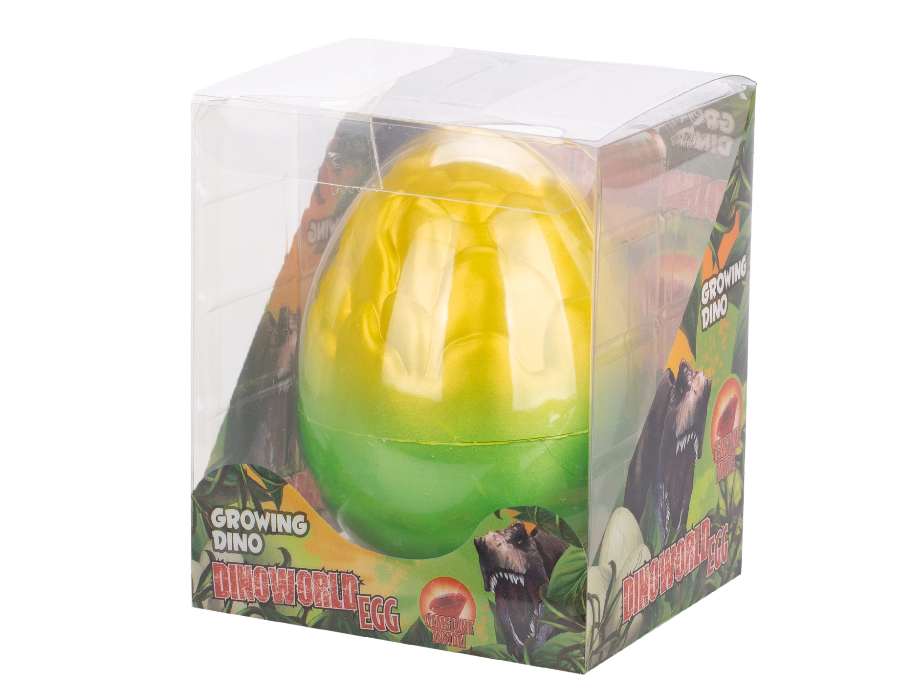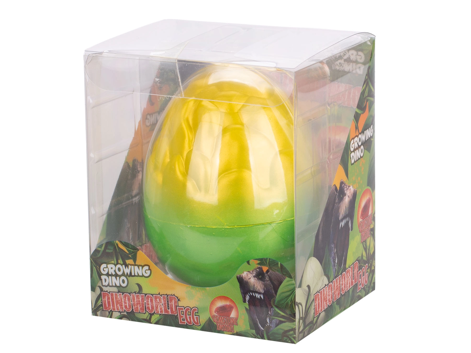 Otkrijte čaroliju prapovijesti s igračkom Dinoworld izlegajući i rastući dinosaurus s draguljem. Dovoljno je staviti jaje u vodu i promatrati kako se tijekom 24–48 sati ljuska počinje lomiti i pojavljuje se mali dinosaurus, koji u roku od 72 sata naraste do pune veličine. Dvije boje jaja, 6 vrsta dinosaura i priloženi dragulj osiguravaju uzbuđenje, zabavu i učenje.