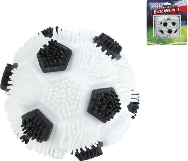 Zabavna i sigurna rastezljiva loptica promjera 7 cm razveselit će male sportaše od 3 godine. Meka je, elastična i odlično leži u ruci. Površina sa mrežicom stvara atraktivan efekt pri stiskanju, potiče razvoj fine motorike i koordinaciju ruke i oka. Zahvaljujući nogometnom dizajnu u crno-bijeloj izvedbi idealna je za stiskanje, bacanje i hvatanje kod kuće, u vrtu i na putu.