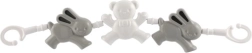 Lančić za kolica s medoima i zecom idealan je dodatak za zabavu vašeg djeteta. Zahvaljujući raznolikim oblicima i živim bojama pomaže razvijati finu motoriku i osjetila vašeg djeteta. Jednostavno pričvršćivanje pomoću kukica na oba kraja omogućuje brzo i lako postavljanje na kolica ili krevetić.