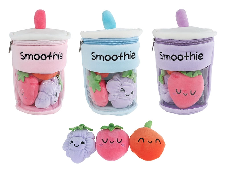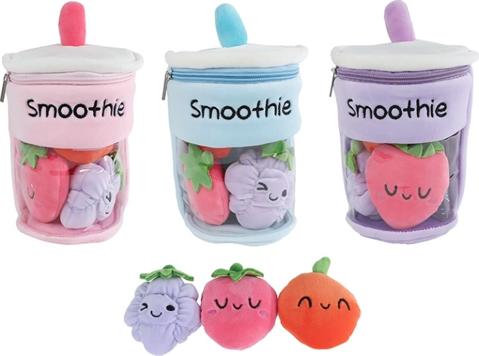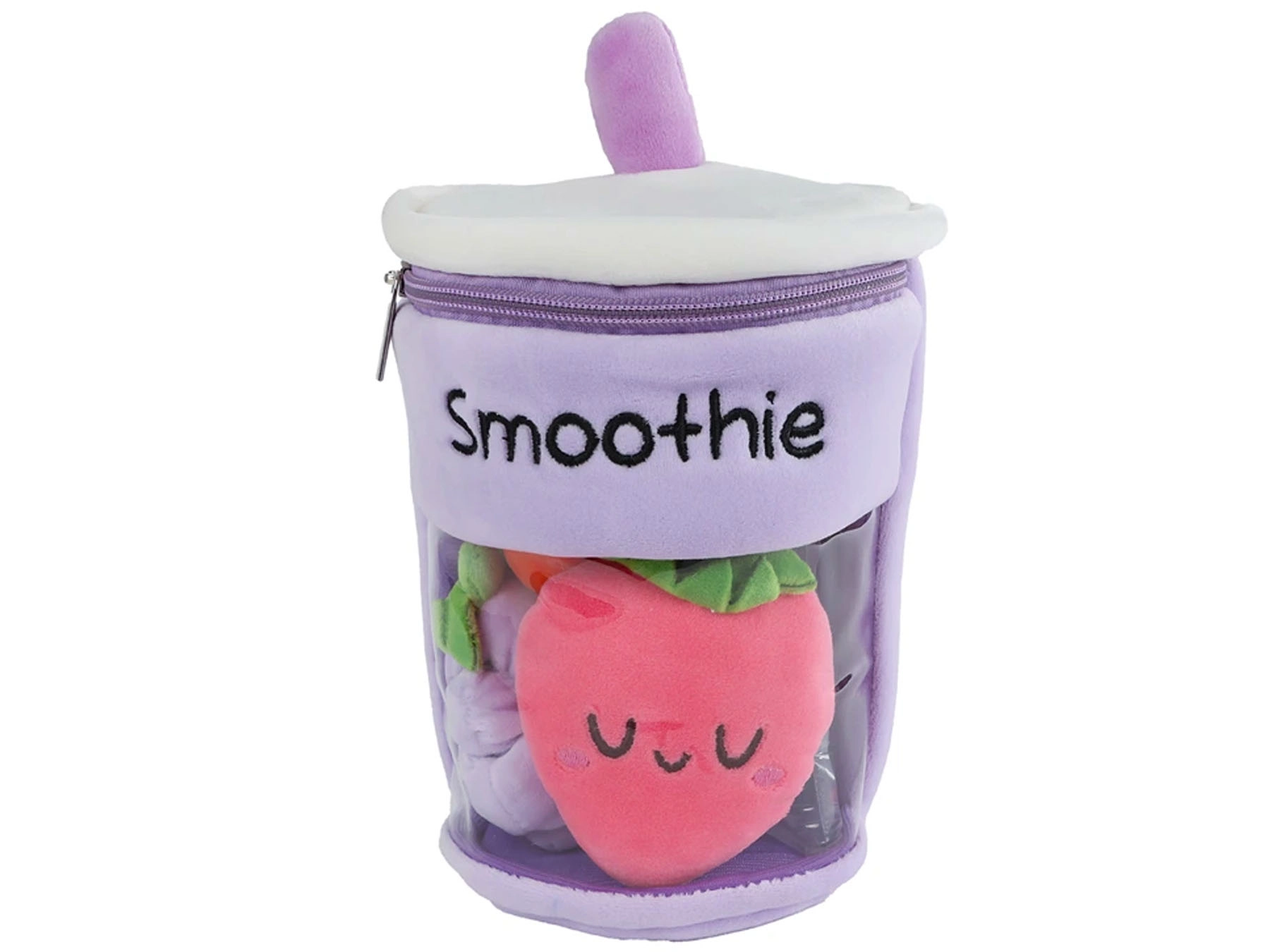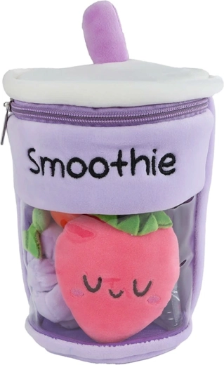 Otkrijte razigrani svijet s plišanom smoothie čašom FLUFFY MENU, koja skriva tri simpatična voćna komadića. Patentnim zatvaračem lako otvorite čašu, izvadite jagodicu, borovnicu ili druge plodove i dopustite djeci da stvaraju vlastite priče. Mekani materijal ugodan je na dodir i idealan za svakodnevno maženje.