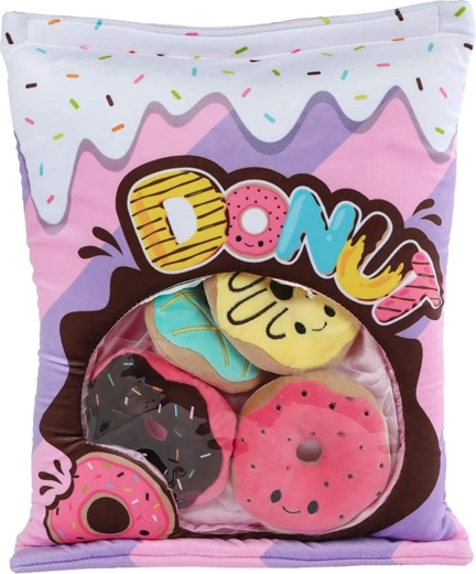 Meka plišana torba služi ne samo kao omot, već i kao praktičan organizator – djeca uče odlagati igračke, razvrstavati i održavati red. Teksture i oblici krafni potiču taktilnu percepciju, razvoj fine motorike i koordinaciju oko–ruka već od najranije dobi.
