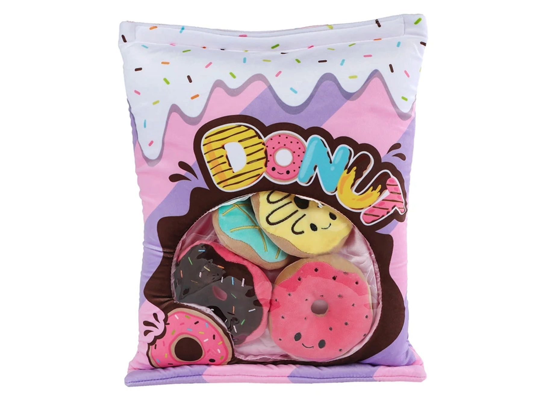 Presladak plišani set Fluffy Menu donosi četiri šarene krafne smještene u mekoj torbi. Svaka krafna ima jedinstvenu boju i veseli izraz, što ih čini i zabavnom igračkom i stilskim dekorativnim detaljem. Zahvaljujući mekanom plišanom materijalu ugodne su na dodir i prikladne za bebe od rođenja. Praktična torba služi kao spremište te potiče red i razvoj fine motorike.