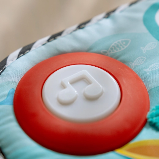 Ova višenamjenska podloga kombinira glazbenu igračku za krevetić i aktivni panel za igru na podu. Zahvaljujući mekom podlošku idealna je za novorođenčad i malu djecu – od igre u ležećem položaju, preko vremena na trbuščiću, do prvog samostalnog sjedenja. Djeca mogu udarati u 5 osvijetljenih “tipki”, pritiskati gumbe i otkrivati zvukove marimbe, melodije i razigrane efekte.