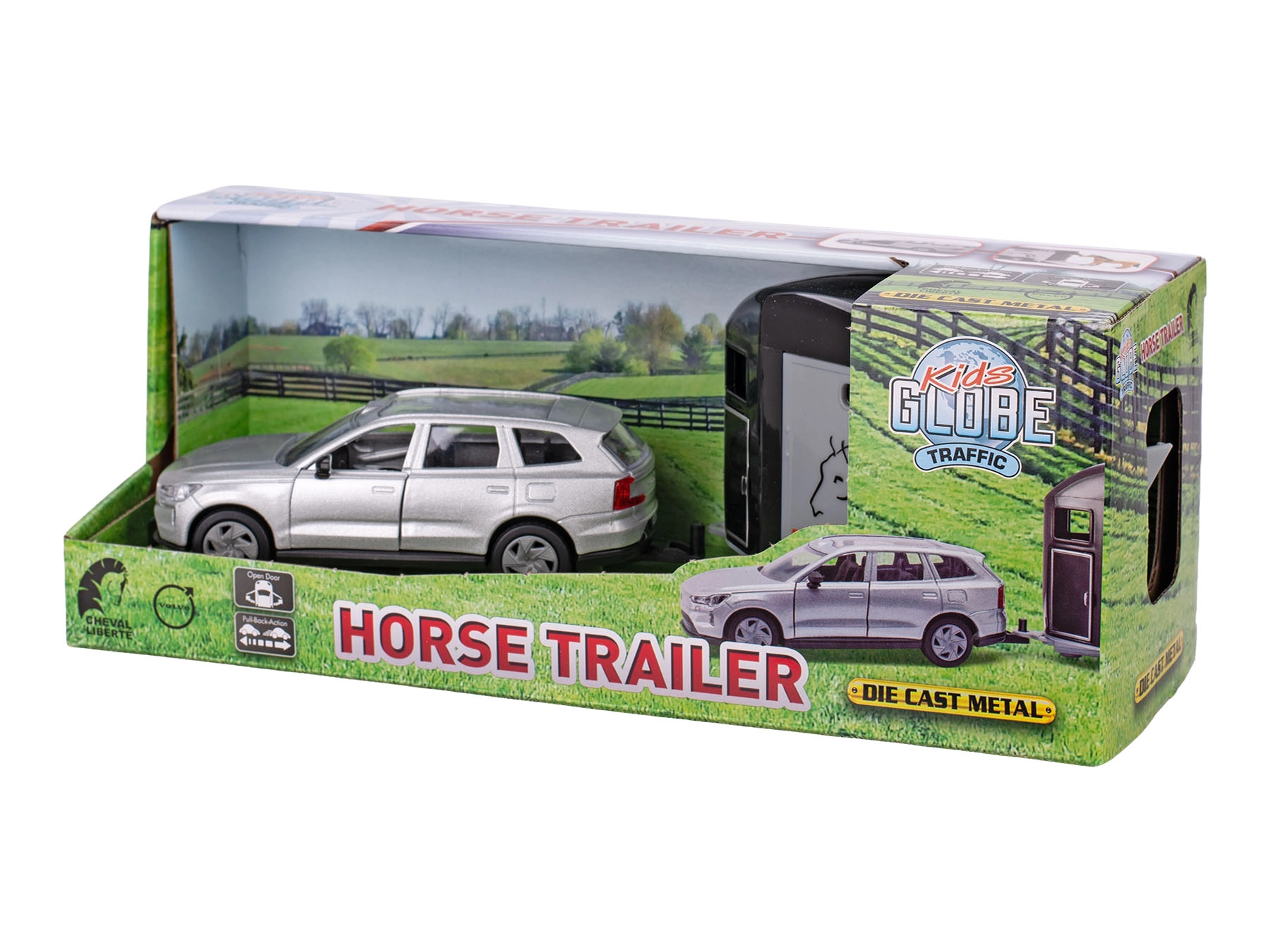 Realističan metalni model KIDS GLOBE TRAFFIC VOLVO EX90 s prikolicom za konje donosi djeci autentičan doživljaj seoskog okruženja. Nudi detaljnu izradu, funkciju povratnog hoda i izdržljivu kombinaciju metala i plastike za dugi vijek trajanja. S kompaktnom duljinom 28 cm idealan je za igru u kući i na otvorenom te će razveseliti male gospodarstvenike i ljubitelje konja.
