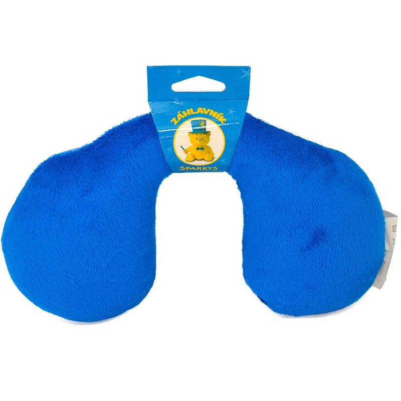 Praktični dječji naslon za glavu u plavoj boji dizajniran je za udobno putovanje. Zahvaljujući mekoj površini i kompaktnim dimenzijama pruža stabilnu potporu glavici i pomaže spriječiti neudoban položaj tijekom spavanja na putu.
