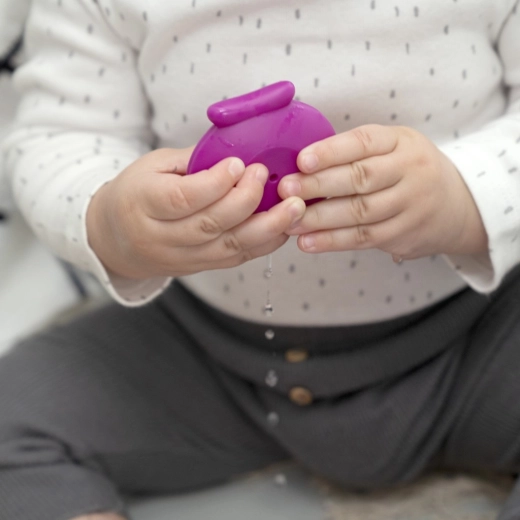 Set od 5 dijelova kombinira velike, lako prihvatljive čaše s raznim otvorima za protjecanje i kapanje te zabavnu špricalicu u obliku školjke. Djeca mogu čaše slagati, umetati, gnijezditi i otkrivati različite teksture, što prirodno razvija koordinaciju ruka–oko i osjetilnu percepciju.