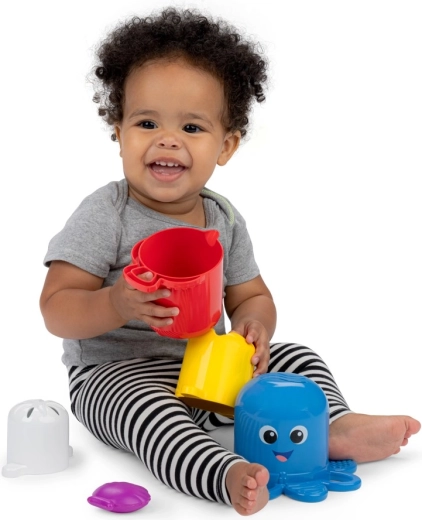 Čaše su idealne za kadu i pijesak – poslužit će za pretakanje, cijeđenje i oblikovanje. Prijateljski dizajn i žive boje potiču vizualnu stimulaciju i učenje boja, dok promjena boje hobotnice Opus u toploj vodi donosi element iznenađenja i učenje uzroka i posljedice.