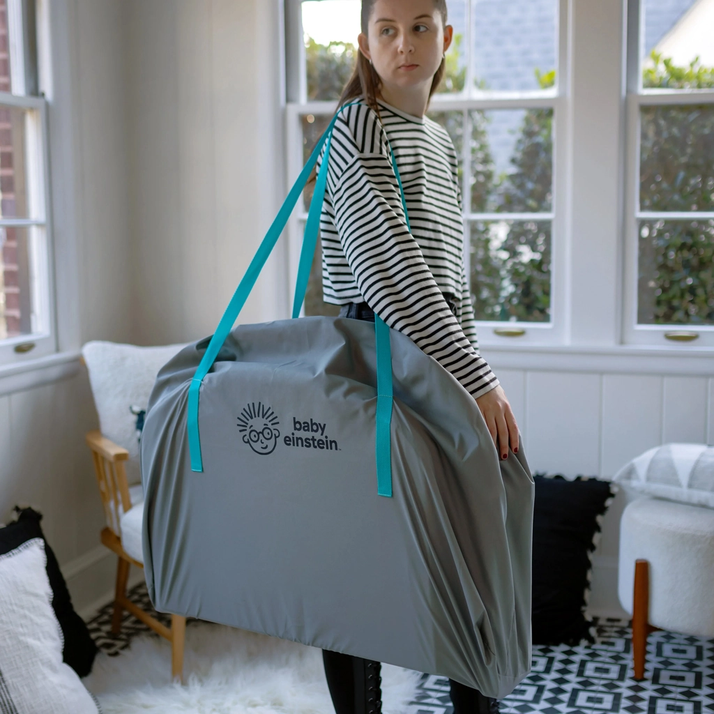 Otkrijte fleksibilno rješenje za njegu i igru s proizvodom Baby Einstein Kick & Snooze 3-u-1. U načinu bassinet nudi bebi udobno i sigurno mjesto za spavanje uz umirujuću glazbu i nježna svjetla. Kako dijete raste, lako prebacite na activity gym za igru na trbuščiću i senzorni razvoj ili na playard/ogradicu za sigurnu samostalnu igru.