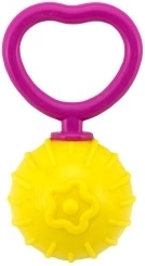 Ergonomska ručka omogućuje bebi čvrst i udoban hvat, potiče koordinaciju oko–ruka i prve pokušaje samostalnog držanja.