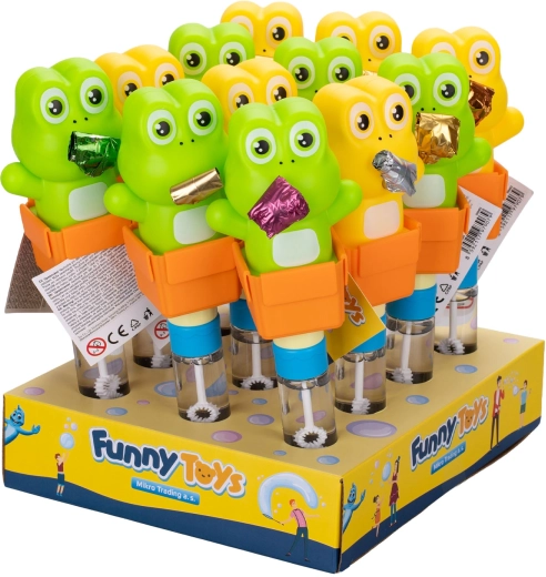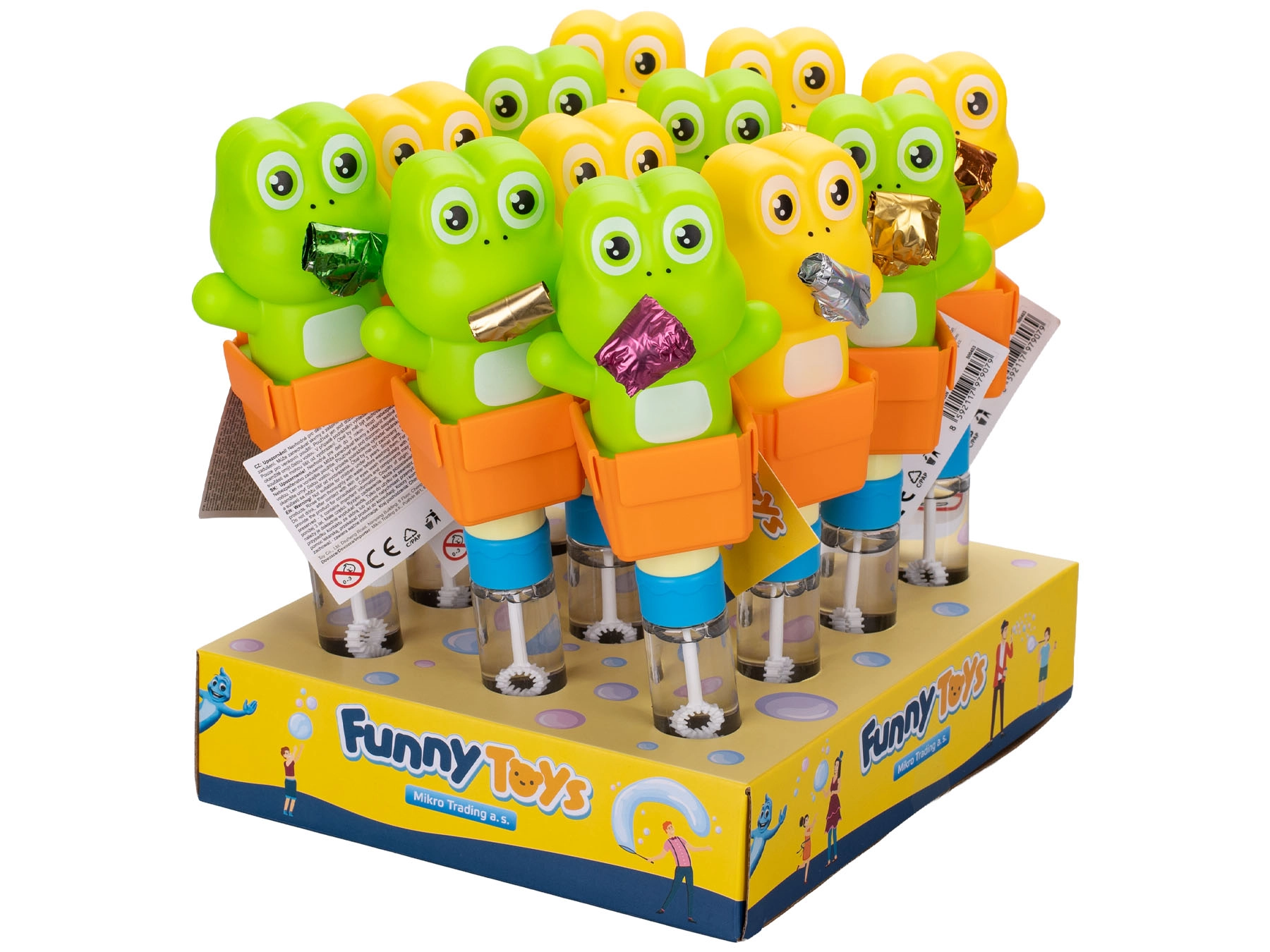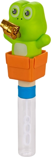 Zabavna igračka za djecu od 3 godine koja kombinira klasični puhač mjehurića i party puhalicu za dvostruku dozu zabave. Vesela žabica stvara puno mjehurića, proizvodi tipične zvukove puhalice i idealna je za dječje proslave i partyje. Dostupna u dvoje boja i izrađena od izdržljive plastike za sigurno i ugodno igranje.