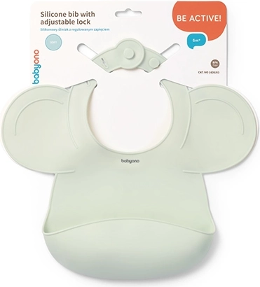 Praktičan silikonski podbradak Babyono u boji Sage osigurava čistoću pri svakom hranjenju. Zahvaljujući dubokom džepu za mrvice, laganoj izradi i podesivom kopčanju udobno pristaje i učinkovito štiti odjeću. Pranje u perilici posuđa ili brzo ispiranje pod vodom bez napora.
