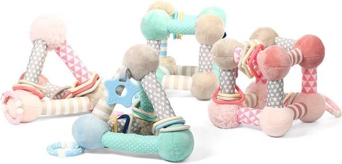 Minimalistički pastelni dizajn uklapa se u svaku dječju sobu. Igračka je idealna za putovanja – C prsten omogućuje jednostavno pričvršćivanje na kolica ili autosjedalicu. Potiče maštu, kognitivne sposobnosti i koordinaciju ruka–oko kroz sigurnu i zabavnu igru.