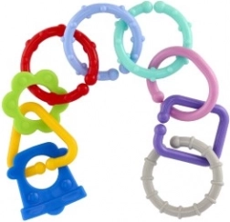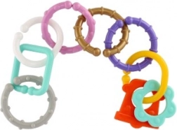 Ovaj set šarenih karika i oblika osmišljen je za najmlađe. Zahvaljujući različitim bojama, oblicima i teksturama djeca prirodno razvijaju osjetilnu percepciju i koordinaciju ruka–oko. Pojedini dijelovi lako se spajaju i čvrsto drže, pa djeca mogu stvarati vlastite lančiće ili pričvrstiti igračke na kolica ili autosjedalicu.