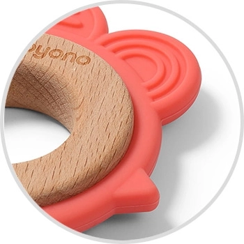 Grizalica BabyOno Hen spaja prirodnu bukovinu s mekim silikonom za prehranu za nježnu, ali učinkovitu masažu desni. Teksturirane izbočine donose trenutno olakšanje, potiču osjetilnu percepciju i olakšavaju držanje malim ručicama. Životinjski motiv djeci je atraktivan i potiče igru.
