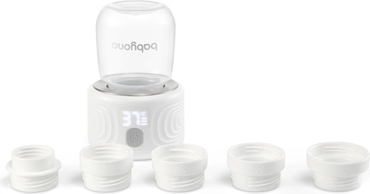 U pakiranju ćete pronaći sve što vam treba: bočicu zapremnine 180 ml, pet izmjenjivih adaptera za popularne marke bočica i USB‑C kabel. Zahvaljujući laganom i kompaktom dizajnu, grijač stane u torbicu, torbu za presvlačenje i kolica, a tihi rad ne remeti bebino spavanje.