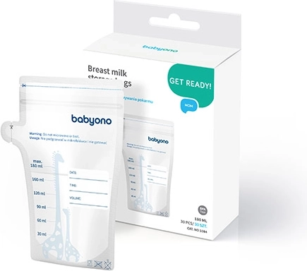 Jednokratne vrećice za majčino mlijeko BABYONO zapremnine 180 ml osiguravaju sigurno i higijensko čuvanje i zamrzavanje. Imaju nepropusni zatvarač, stabilno samostojeće dno, točnu mjernu skalu i mjesto za opis (datum, vrijeme, količina). Posebno oblikovan izljev olakšava ulijevanje u bočicu, a sterilizacija gama zrakama jamči najviše higijenske standarde.