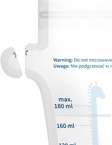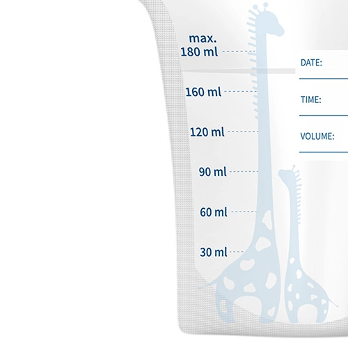 Jasne oznake do 180 ml i posebno polje za datum, vrijeme i volumen omogućuju precizno doziranje i pregledno označavanje svake porcije mlijeka.