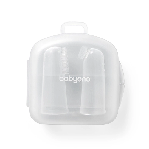 Održavajte oralnu higijenu bebe od prvih dana uz praktičan set BABYONO. Dvije različite prstne četkice od mekog silikona nježno brinu o desnima i prvim zubićima – jedna za masažu tijekom nicanja, druga za nježno čišćenje. U kompletu je higijenska putna kutijica. Bez BPA, lako čišćenje, prikladno od 0m+.