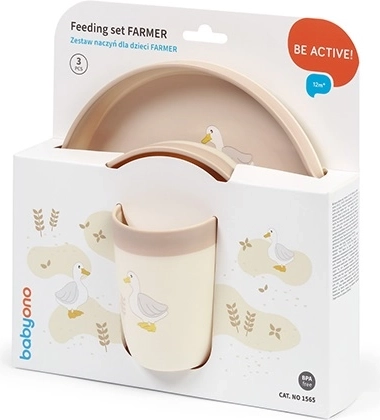 Praktičan dječji set za jelo Babyono Farmer za djecu od 12 mjeseci sadrži tanjur, zdjelicu i otvorenu čašicu za vježbanje samostalnog hranjenja. Lagana i izdržljiva PP plastika, protuklizno dno na svim dijelovima i zaobljeni rubovi nježni prema desnima pomažu smanjiti nered te pružaju udobnost i sigurnost pri svakom obroku. Učenje pijenja iz otvorene čašice prirodno razvija koordinaciju, jača mišiće usta i potiče zdrave navike.