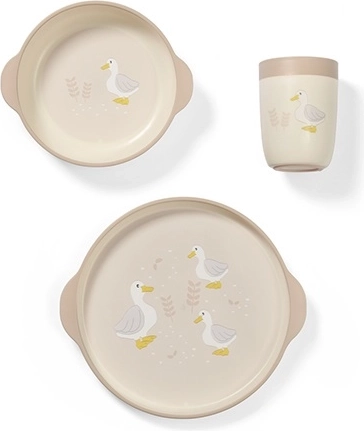 - Komplet 3-u-1 – tanjur, zdjelica i čašica za svaki obrok.