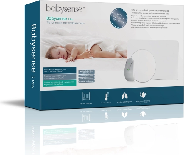 Monitor disanja Babysense 2 Pro neprekidno nadzire respiratorne pokrete djeteta kroz madrac pomoću pasivnih senzorskih podloga. Ako se disanje ne detektira dulje od 20 sekundi ili respiratorna frekvencija padne ispod 10 udisaja u minuti, aktivira se izraženi akustični i vizualni alarm. Kontrolna jedinica kontinuirano signalizira aktivnost disanja, tako da situaciju imate uvijek pod kontrolom.